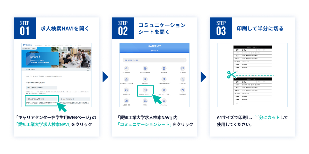 02. 「コミュニケーションシート」を必ず持参しましょう(学部3年生・院1年生)