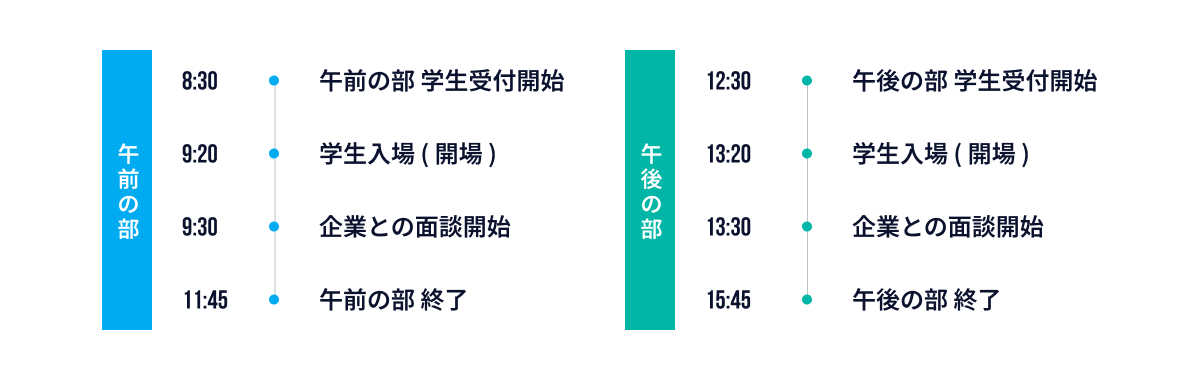 • 学生受付の順にスタッフが誘導します。各ブースの席数には限りがあります。
